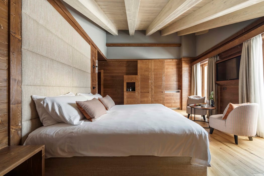 Legni chiari, una palette di colori realizzata con Loro Piana e nuance calde ispirate al paesaggio danno vita a spazi luminosi e avvolgenti. Un equilibrio delicato che accoglie con naturalezza e fa sentire subito l’ospite come a casa.